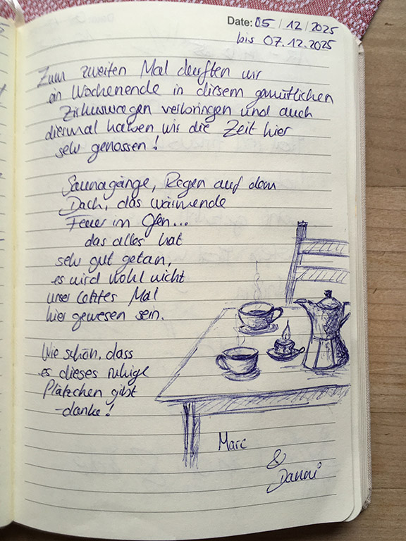Im Preis inbegriffen: Brennholz, Bettwäsche, Handtücher/Küchentücher, Spülmittel, Grundausstattung zum Kochen (Gewürze, Tee, Kaffee), Decken, Spiele/Bücher, Saunaöl