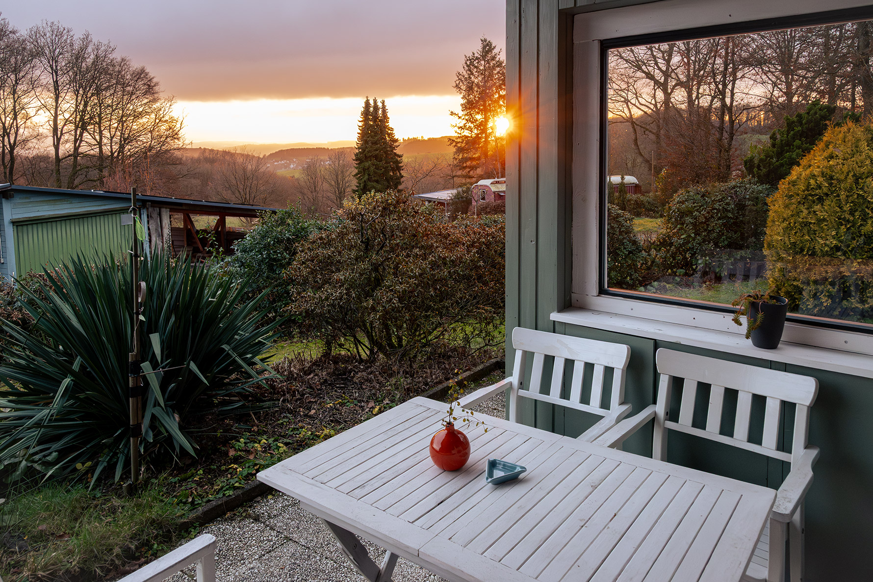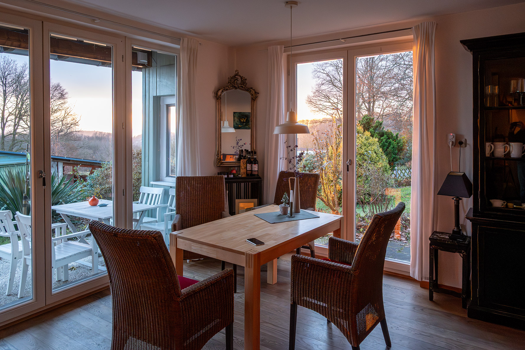 Die schöne Bleibe, ein Dreiklang von Natur, Genuss und Wellness. Umgeben von bewaldeten Hügeln, grünen Wiesen und Weiden, weit ab vom Lärm der Straßen fällt schon nach kurzem Aufenthalt die Alltagsspannung ab. Von der Sauna mit großem Fenster blickt man in den Garten. Das Haus ist individuell und hell gestaltet. Es verfügt über eine große offene Wohnküche mit Kaminofen. Von den beiden Schlafzimmer hat man eine schöne Aussicht über die Hügel und Weiden. Der große Garten bietet viel Platz und Kinder können sich hier, vom Straßenverkehr ungefährdet, bewegen. Nach unseren Erfahrungen mit der „Auszeit mit Weitblick“ machen Kinder aus dem weitläufigen Gelände gerne einen Abenteuerspielplatz.